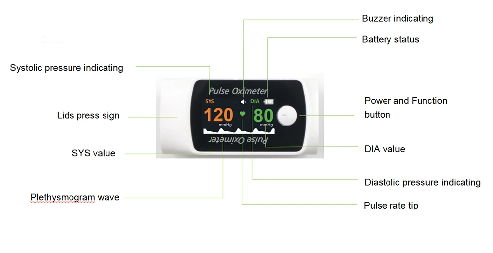 When in SpO2 measurement mode, short press the “POWER/FUNCTION” button for 1second, the device enter CNIBP mode.