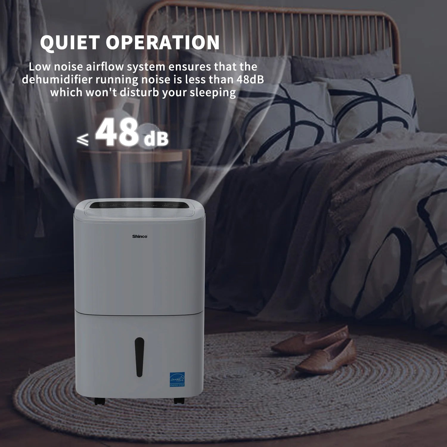 【7,000 Sq.Ft DEHUMIDIFIER】The Shinco Dehumidifier is a powerful small dehumidifier capable of removing up to 150 pints of moisture per day under extreme conditions (95°F, 90% RH). Perfect for spaces up to 7,000 sq. ft, this dehumidifier for home can adjust humidity from 30% to 80% in 5% increments which is easier to maintain a ideal 45%-55% humidity for your healthy, making it ideal for basements, bedrooms, bathrooms, kitchens, and more
